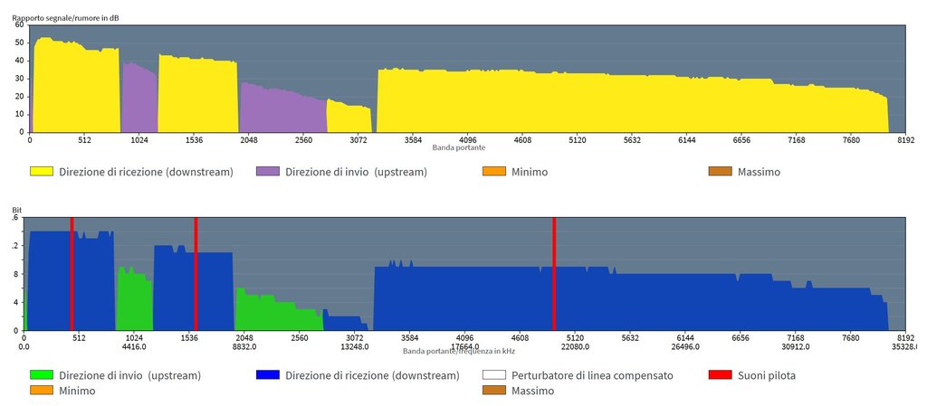 Esattamente ma il problema si presenta su qualsiasi dispositivo nello stesso momento, anche tramite Wi-Fi. L’unica cosa che vorrei escludere è un problema del modem, perché come detto la portante non viene mai persa ma al contrario come si può vedere rimane molto stabile. Errori nei log non ci sono ed escluderei problemi di cavi lan dato che avviene su tutti i dispositivi pure via Wi-Fi ed escluderei il cavo rj11 in quanto anche sostituendolo il problema non cambia. La presa a muro rj11 sembra anch’essa funzionante, considerando anche che se avesse problemi quella si dovrebbero vedere cadute di portante, almeno credo. Io sono rimasto con due ipotesi, problema del modem o problema PPPoE.