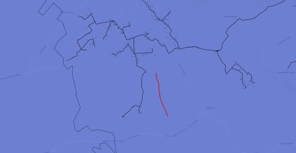 Mi trovo in una zona di campagna nel comune di Monopoli, provincia di Bari. Non dico il punto esatto, ma diciamo che sto da qualche parte lungo la linea rossa. Lo screenshot in questione è della mappa del piano BUL. I lavori risultano completati dallo scorso anno, ma… sorpresa! In questa traversa non passa nemmeno il rame. Bastardi.
