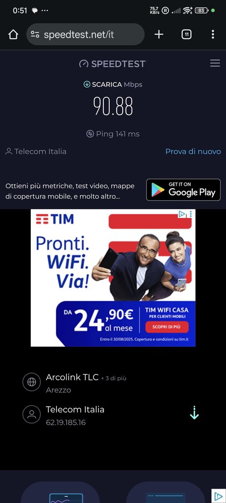 Anche il wifi è ottimo, da una distanza di 50/60 metri senza ostacoli di mezzo prendeva con una tacchetta wifi. La SIM che è sto utilizzando è TIM unica 5G ultra.