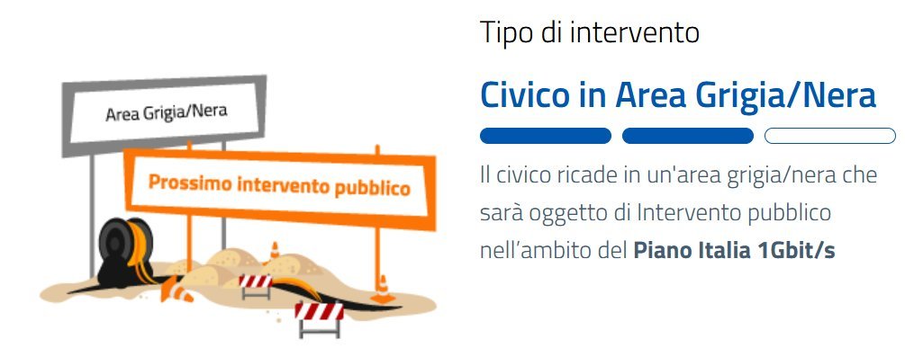Sempre sul sito del ministero c'è scritto che gli interventi sono terminati e non ci sono cantieri aperti. Avevo provato a contattare la TIM l'anno scorso e mi avevano detto che entro Dicembre 2024 l'avrebbero abilitata, cosa che non è successa. Un tecnico che aveva fatto un sopralluogo per risolvere un altro problema mi aveva confermato fosse un problema burocratico e non tecnico.