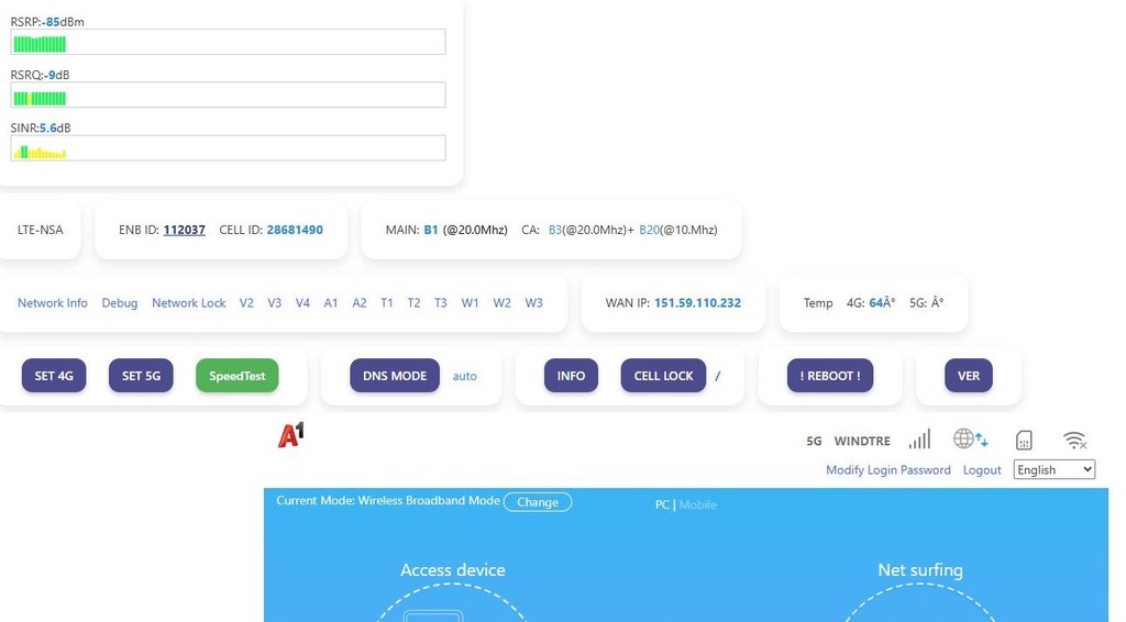 MassimoBordonaro Che ne pensate? E' così da stamattina. Prima agganciava N78, ora neppure l'ombra. Così anche su cellulari 5G. Curiosamente la CPE pensa di essere in 5G...