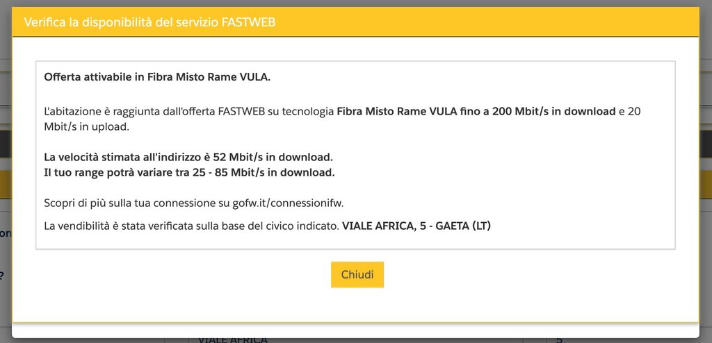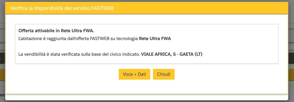 altrimenti dovresti pensare ad una soluzione alternativa, come FWA Homemade, con antenna o modem 4/5G da acquistare e sim da inserire, o eventualmente anche un kit starlink.