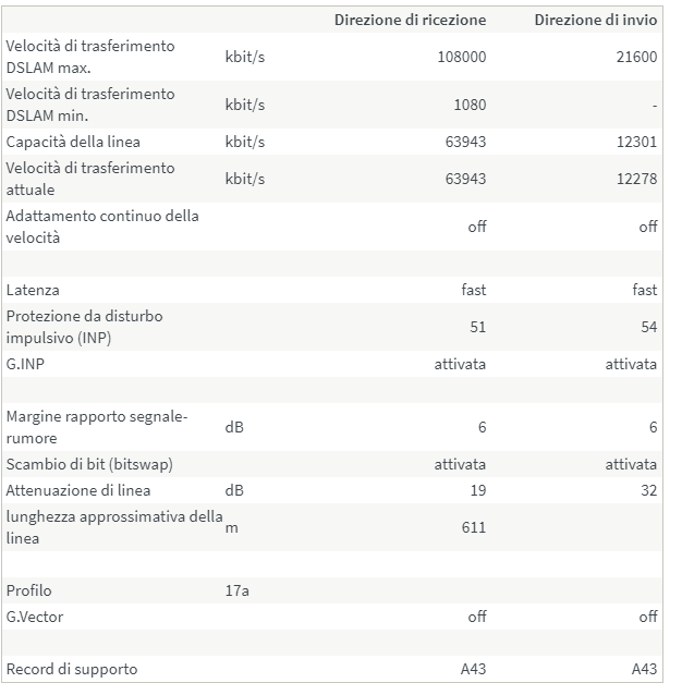 MirkoTomasin Ciao, da un mese ho finalmente anch'io la fibra FTTC di TIM. Agganciavo di portante circa 74 Mbit/s ma da qualche giorno vedo che da Fritz ho circa 64 Mbit/s. Non ho effettuato nessuna modifica di alcun tipo all'impianto o al modem o altro. Ho anche ripristinato il modem ma resta sempre quella velocità. Che sia un problema di cabinet? O software? Grazie