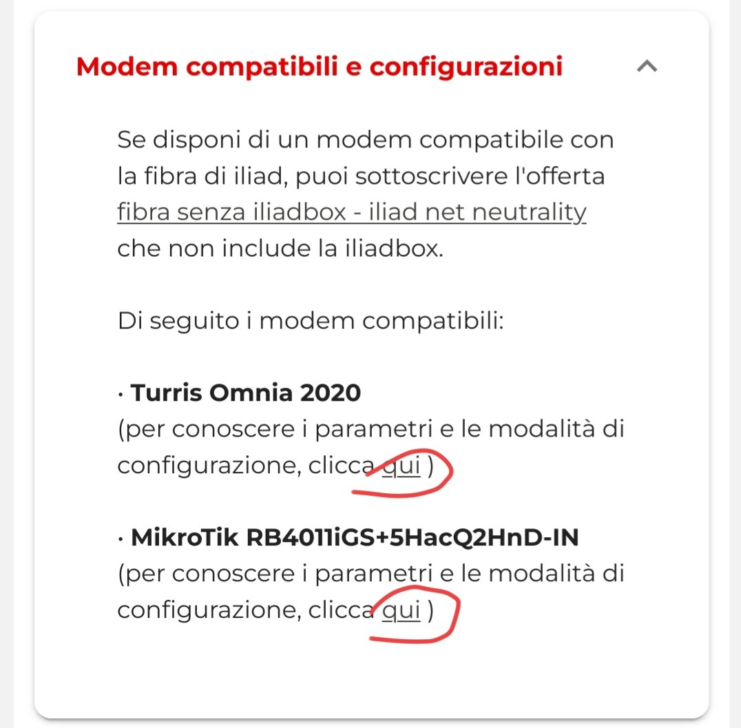 matteosalvitech Ho come l'impressione che l'unico modo sia convertire la rete in modem libero, con l'offerta Iliad dedicata.