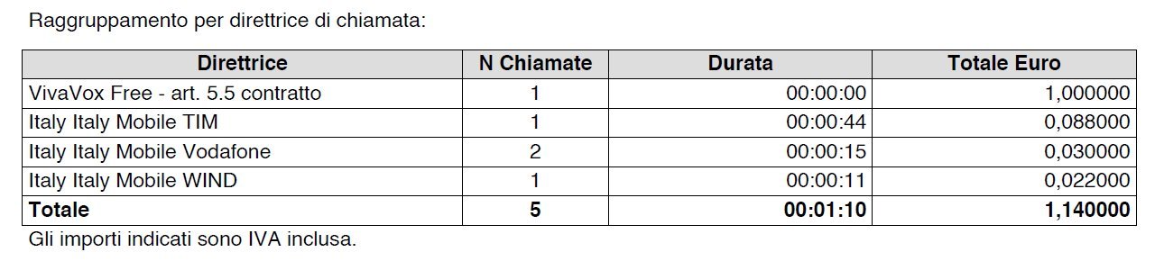 Il costo delle telefonate è calcolato sulla base dei minuti effettivi di conversazione, arrotondati per eccesso al minuto successivo.