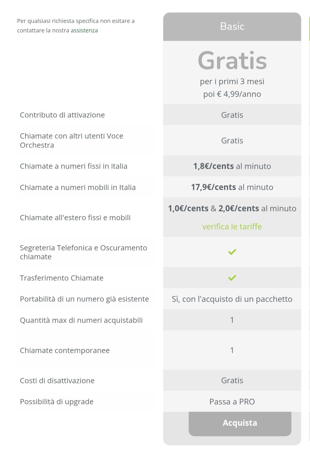 Qui si hanno 3 mesi gratuiti poi c'è un canone di 4,99 all'anno per tenere la numerazione attiva.