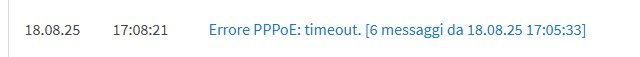 Il problema è successo all’improvviso, senza nessun cambio o aggiornamento effettuato da me. Nei log del Fritz!Box vedo sempre “Errore PPPoE: timeout” ripetuto.