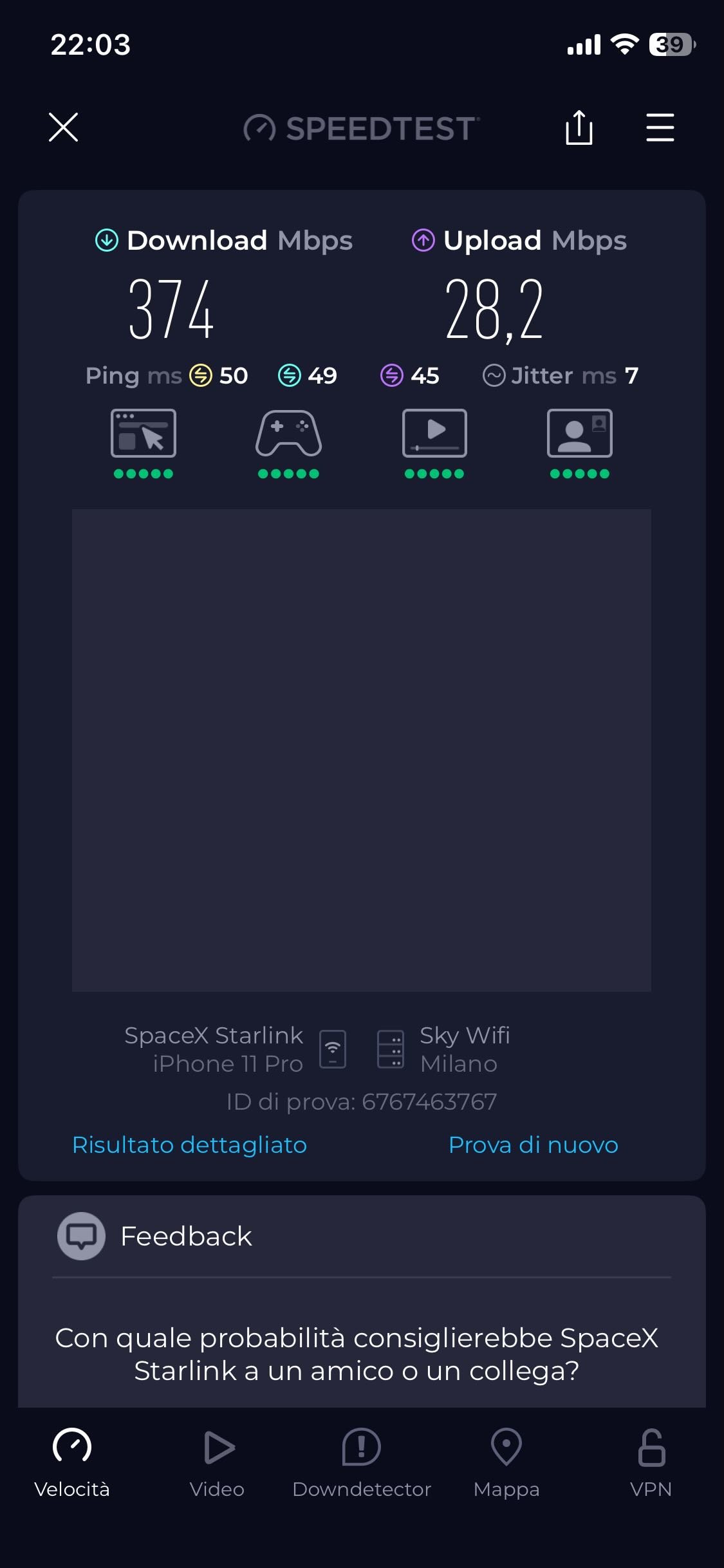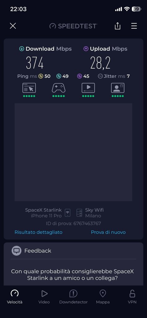 Nel frattempo, ho ordinato Starlink approfittando della promozione in corso, visto che abbiamo ormai perso almeno un altro anno. Il 5G, anche con antenne esterne, è diventato poco affidabile, soprattutto in caso di pioggia. Avevo già testato Starlink prima dell’estate, ma avevo riscontrato problemi dovuti alla visibilità parziale del cielo e alla difficoltà di installare l’antenna sul tetto. Tuttavia, con l’ultimo aggiornamento software hanno introdotto la funzione di Beam Switching, che dovrebbe migliorare la connessione in casi come il mio.