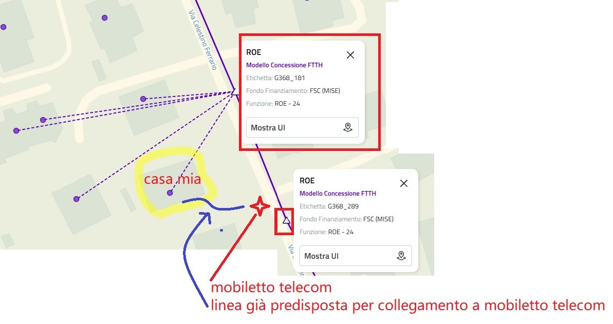 c) tecnicamente avrei davanti casa anche l'altro ROE che sarebbe molto più vicino al "mobiletto" Telecom e mi risulterebbe più "comoda" quella via (proprio li accanto ho già una predisposizione con tubi\corrugati che mi entrano in casa della vecchia linea telefonica dismessa - non so però se si debbano nel caso fare dei lavori o meno visto che il palo del ROE è dall'altro lato della strada)