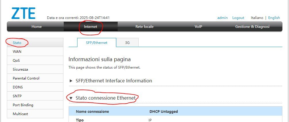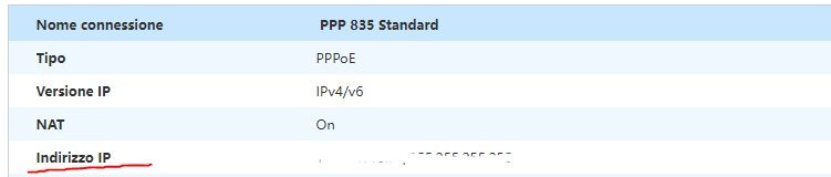 Quindi sulla WAN vedi un IPv4 pubblico, giusto?