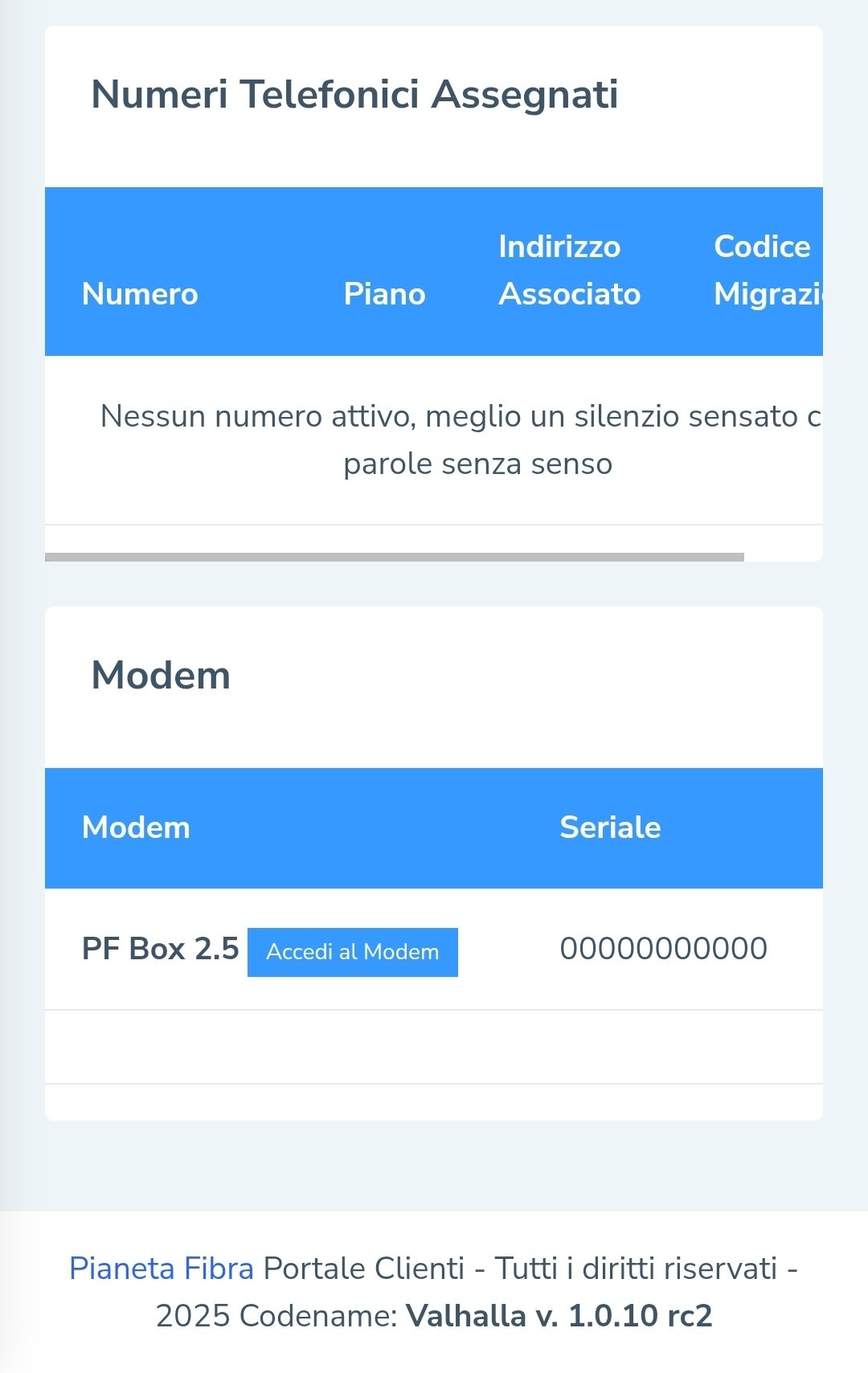 Buondì! Ho attivato, con Pianeta Fibra, una connessione 2.5/1 con router in comodato d'uso.