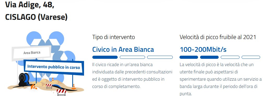 Lorenz2808 Il tuo civico è stato escluso dalla copertura FTTH BUL e coperto dalla FWA di OpenFiber (100/50mbps), venduta da Navigabene e per cui devi avere visibilità dal tetto/balcone verso la BTS, che si trova qui.