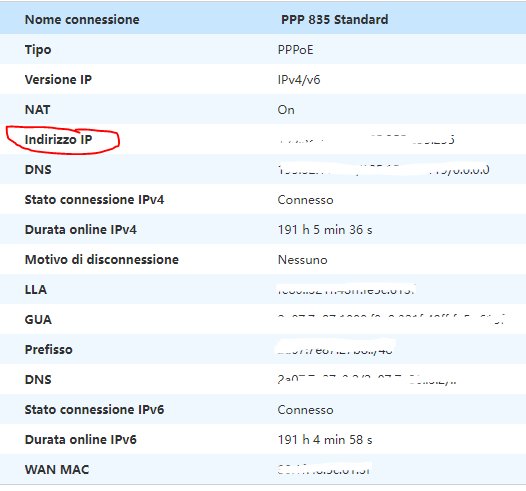 Se non hai mai richiesto IPv4 Pubblico Dinamico a Dimensione allora sei dietro CG-NAT e l'IP assegnato sulla WAN è del tipo 100.xxx.xxx.xxx.