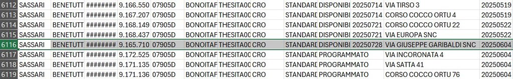 Alcuni ARLO sono stati resi "disponibili" da oltre un mese sul database di Fibercop, compreso quello a cui fa riferimento il mio civico (evidenziato nello screenshot qui sotto)