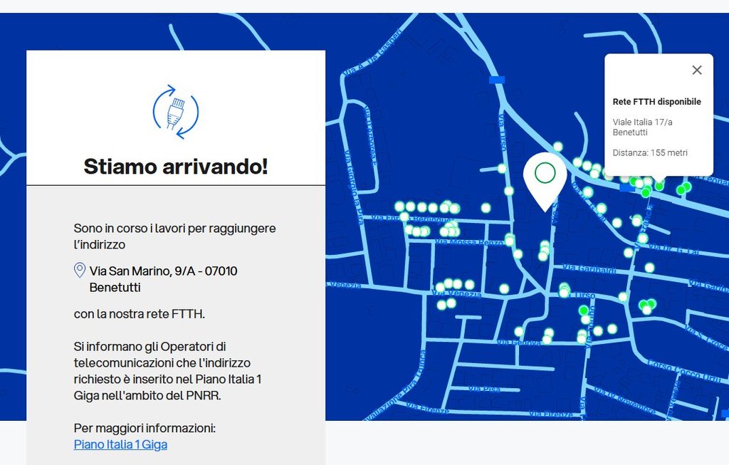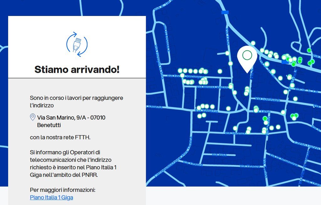Come ho già scritto nella discussione relativa al Piano Italia 1 Giga, il mio comune (Benetutti, Sassari) è oggetto, da qualche mese, di lavori per la posa dell'infrastruttura FTTH Fibercop.