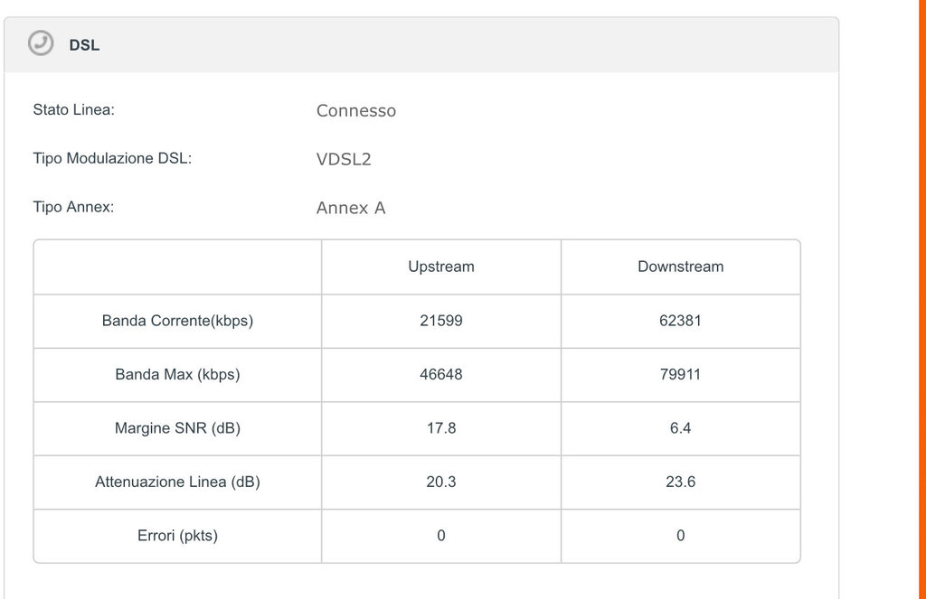 Na per ripristinare la connessione L’attenuazzione che c’era fino a 12 ore fa di 4,4 si può fare una richiesta per far vedere un tecnico a vedere l’armadio, se è entrata dell’acqua nel rame …