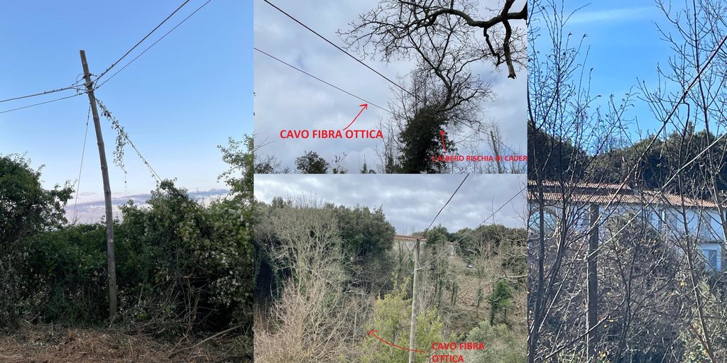 Stato attuale: il PTA non c’è e aggiungo che anche il CNO a cui faccio riferimento non è giuntato; su un palo ci sono 4 cavi multifibra che devono ancora essere giuntati per collegarlo al resto della rete.