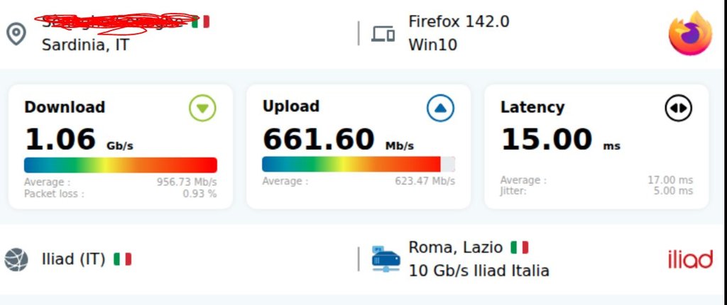 Mi hanno appena attivato la FTTH iliad (da circa 2 giorni) e mi ritrovo nella peculiare situazione per cui tutti i devices connessi alla rete hanno prestazioni in linea con quello che la mia linea può offrire... tranne uno, il mio pc fisso.