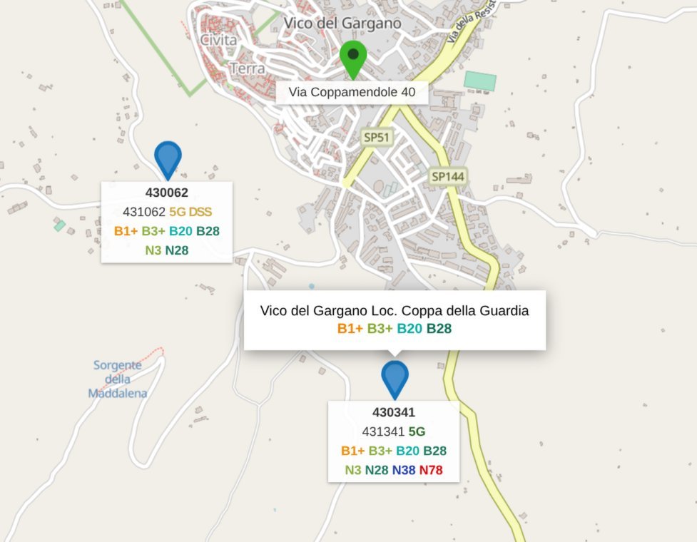 lorenzo657 Per WindTre puoi vedere queste 2 BTS (sei in area pure ZefiroNet, quindi hai spettro in più da poter sfruttare)