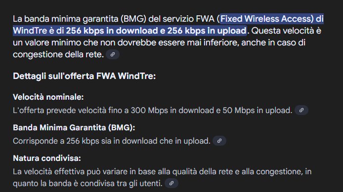 Quando mi ero trasferito, conoscendo la situazione internet, ed essendo un gamer che scarica grosse quantità di gb e gioco online, ho voluto provare la FWA di fastweb con antennina esterna ma non sul tetto in quanto il proprietario mi ha negato l'accesso, ma sinceramente non penso sia questo il problema.