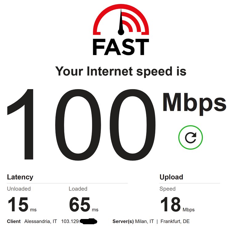 Qualche giorno fa ho installato l'antenna per la FWA dimensione, banda da speedtest 100/20 tutto sommato stabile e funzionante, richiesto l'ip pubblico dinamico che mi hanno assegnato.