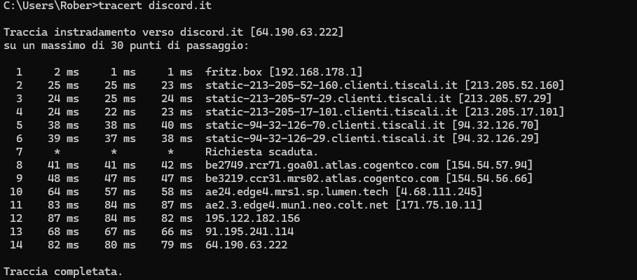 ArcangeloRob Buonasera a tutti, vi posto qualche tracert giuso per capire che giro mi fa fare tiscali, perchè ho notato un abbondante aumento di latenza (Sono collegato al repeater FritzBox in LAN quindi non diretto al modem). Vi posto alcuni tracert fatti, se avete altro da fammi provare ditemi pure. Grazie in anticipo Tracert google Tracert verso cloudfare Tracert discord.it