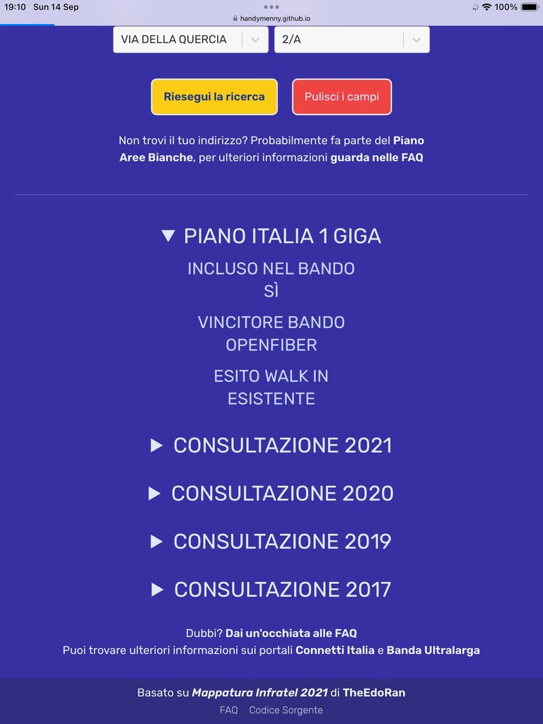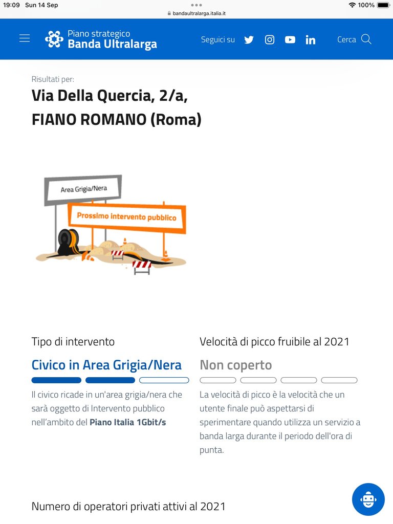 L’abitazione si trova a via della quercia 2a. Ho provato con le ricerche sul sito del piano BUL e attraverso https://handymenny.github.io/mappaturaInfratel/ e di seguito troverete i risultati.