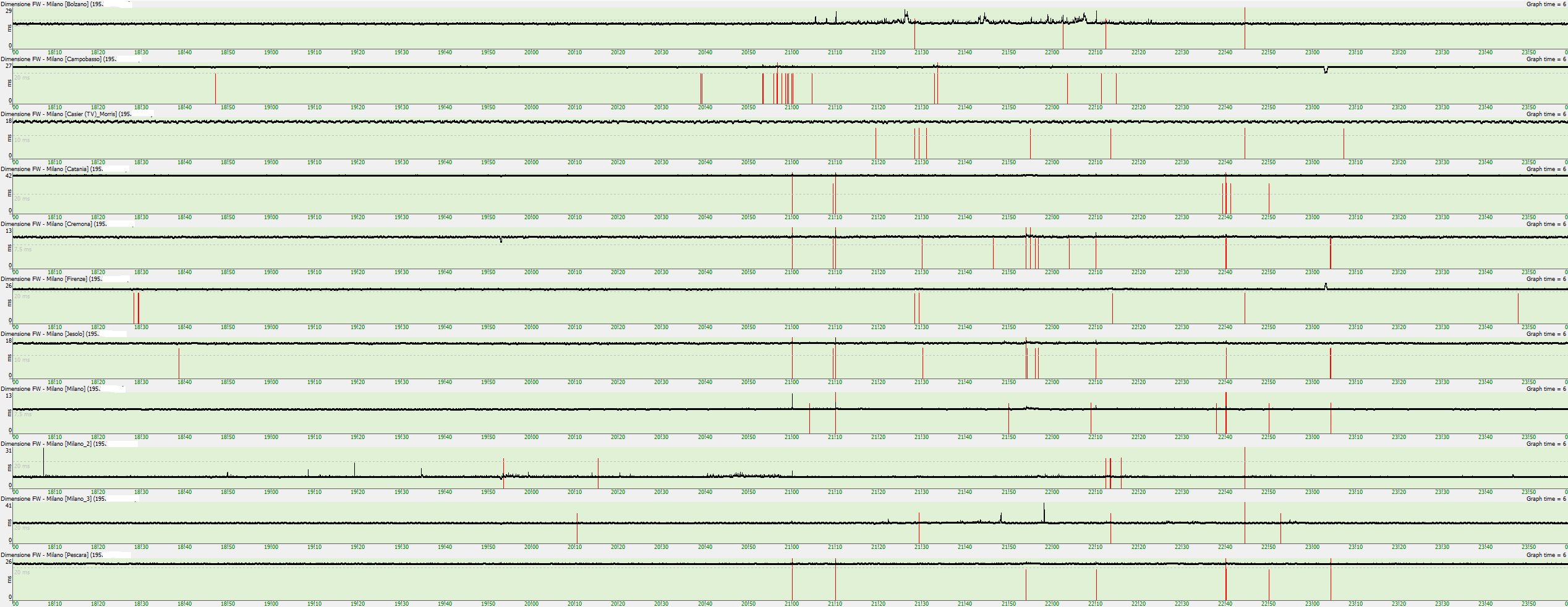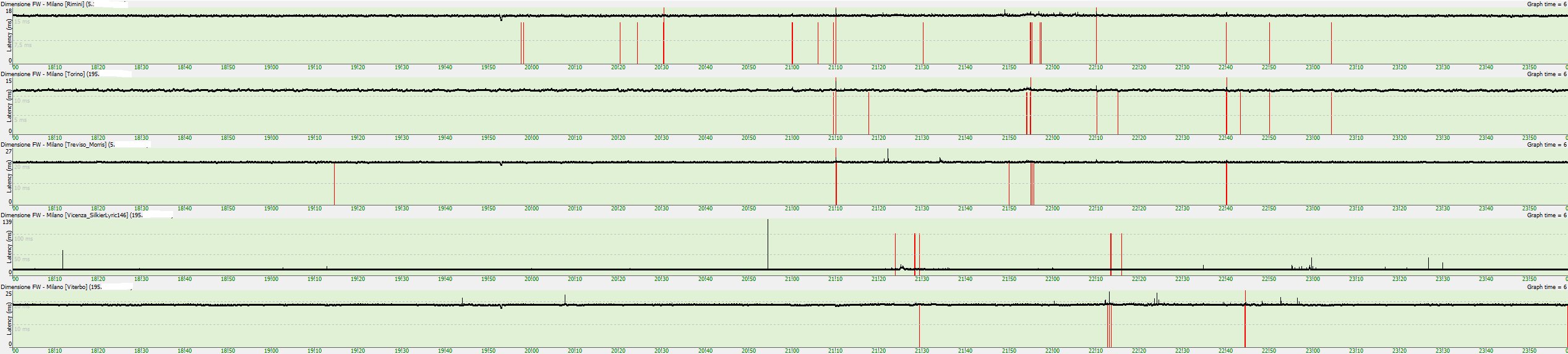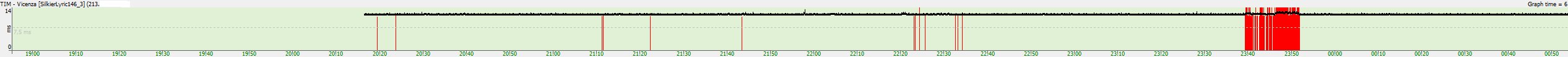 sono tornato da nuoto dopo le 18.30 e ho fatto una breve sessione di lavoro (sviluppo web, quindi banale modifica di files su server remoto) esattamente dove si vede quella sequenza di loss piuttosto fitta