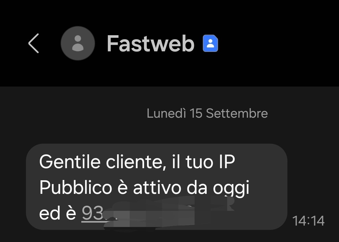 A parte questo, ho richiesto l'ip pubblico statico, ma non c'è modo che mi venga assegnato.