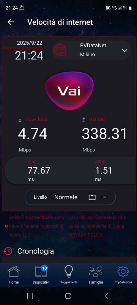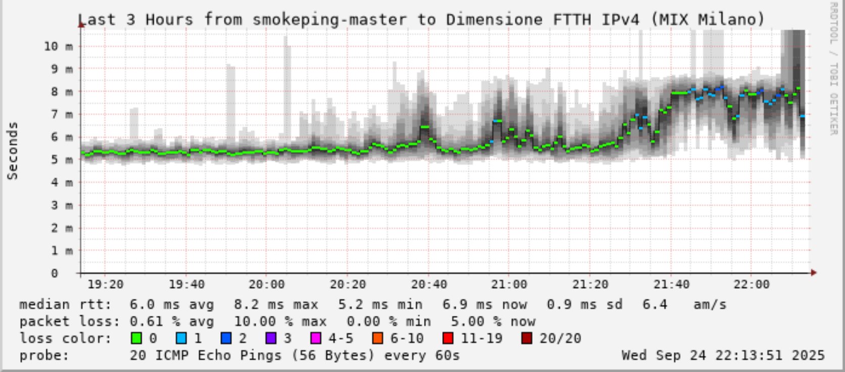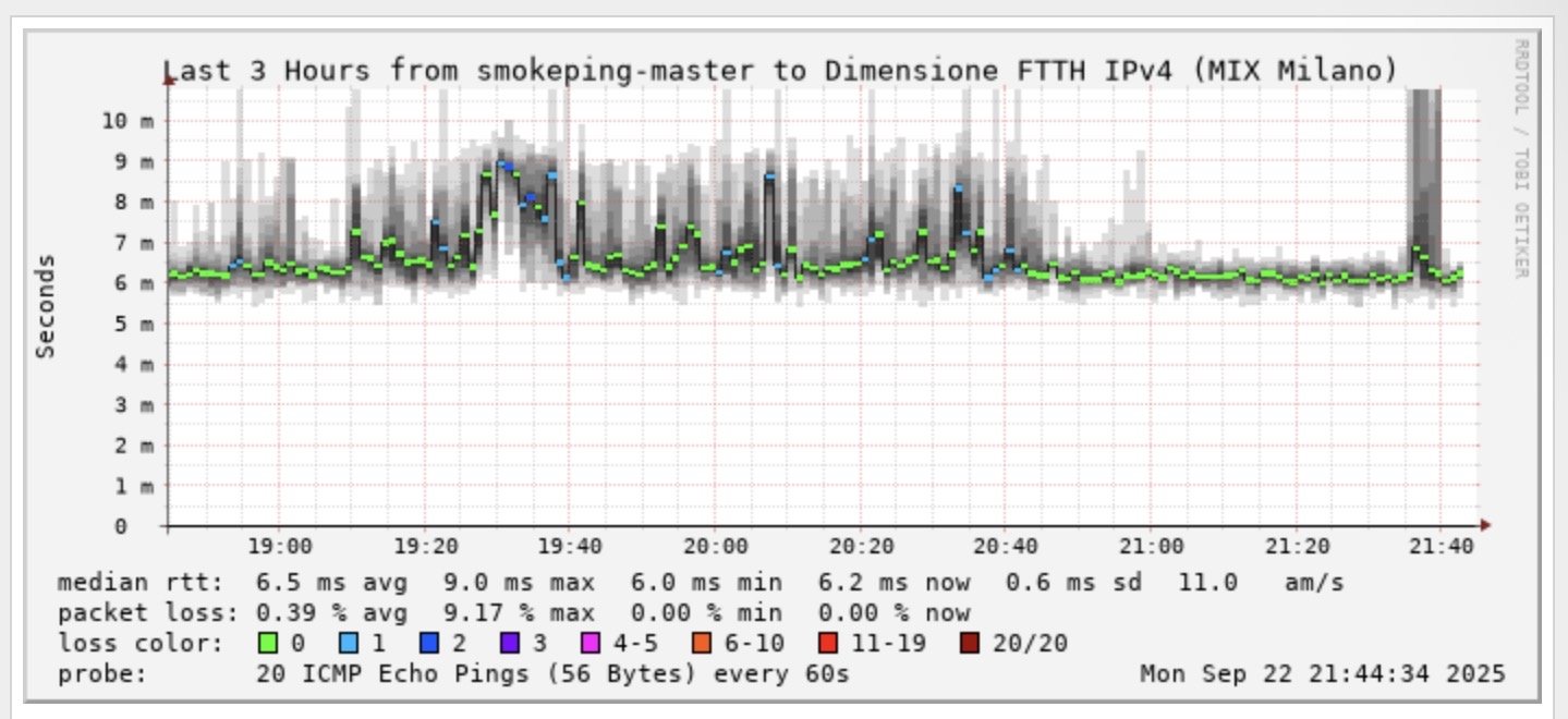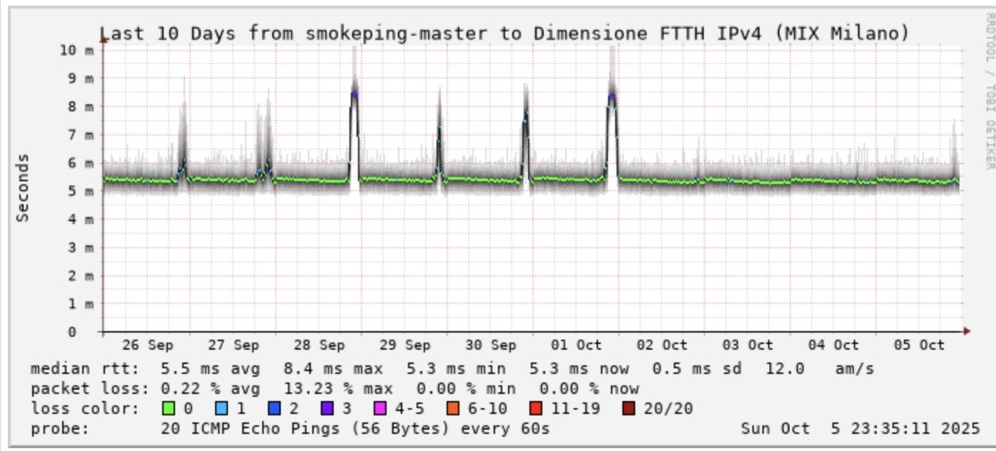 Fraternal3954 Aggiorno la mia situazione: Dopo i problemi arrivati per caso con saturazione serale rilevata per molti giorni sia con che senza partite, la linea è tornata alla stabilità normale; anzi, 1 ms più veloce eheh.