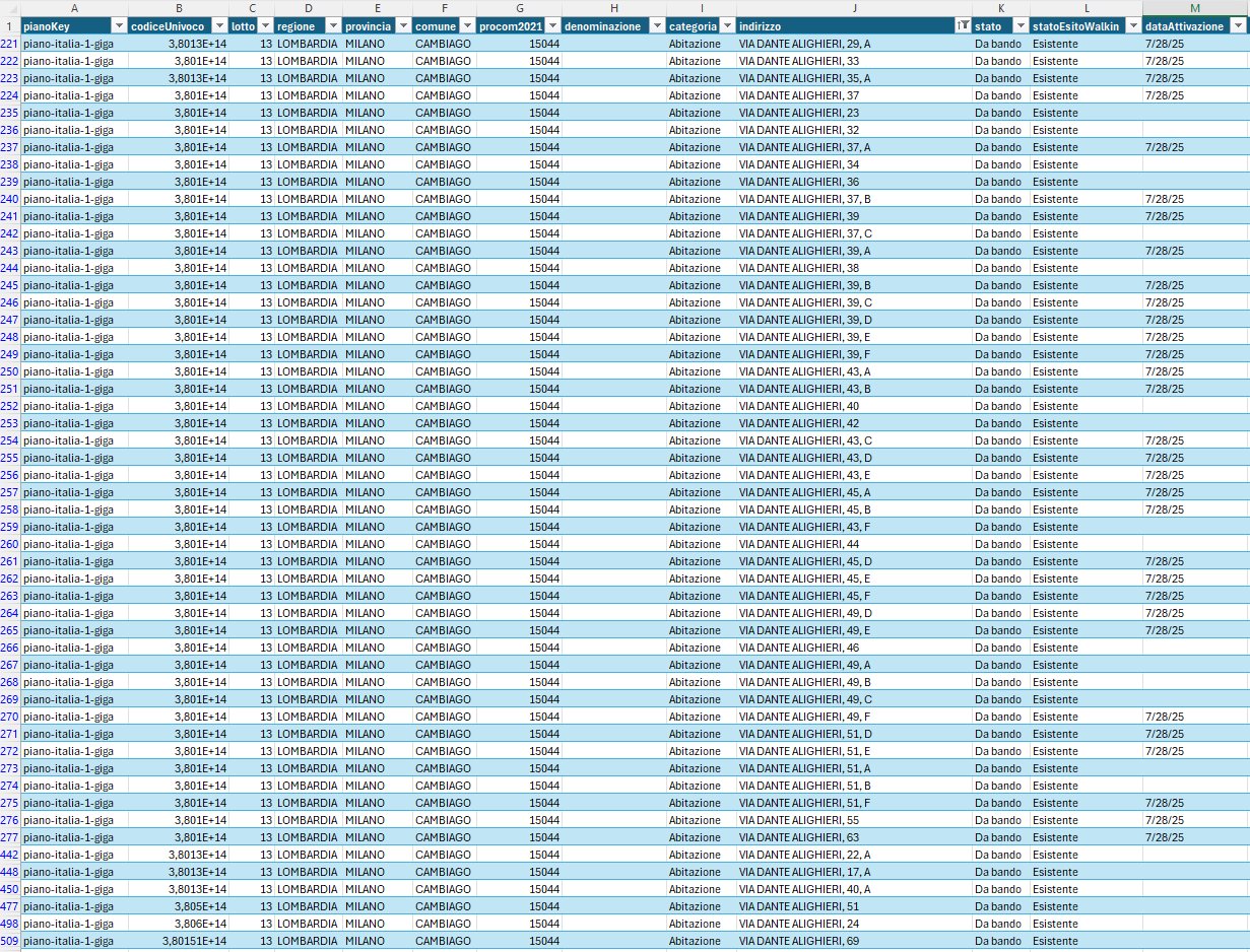 Il mio civico viene indicato come parte del P1G. Ciò che volevo capire è se qualcuno era in grado di vedere lo stato di avanzamento del progetto (progettazione, progetto esecutivo etc) in maniera più aggiornata rispetto a quanto disponibile sul sito bandalarga italia.