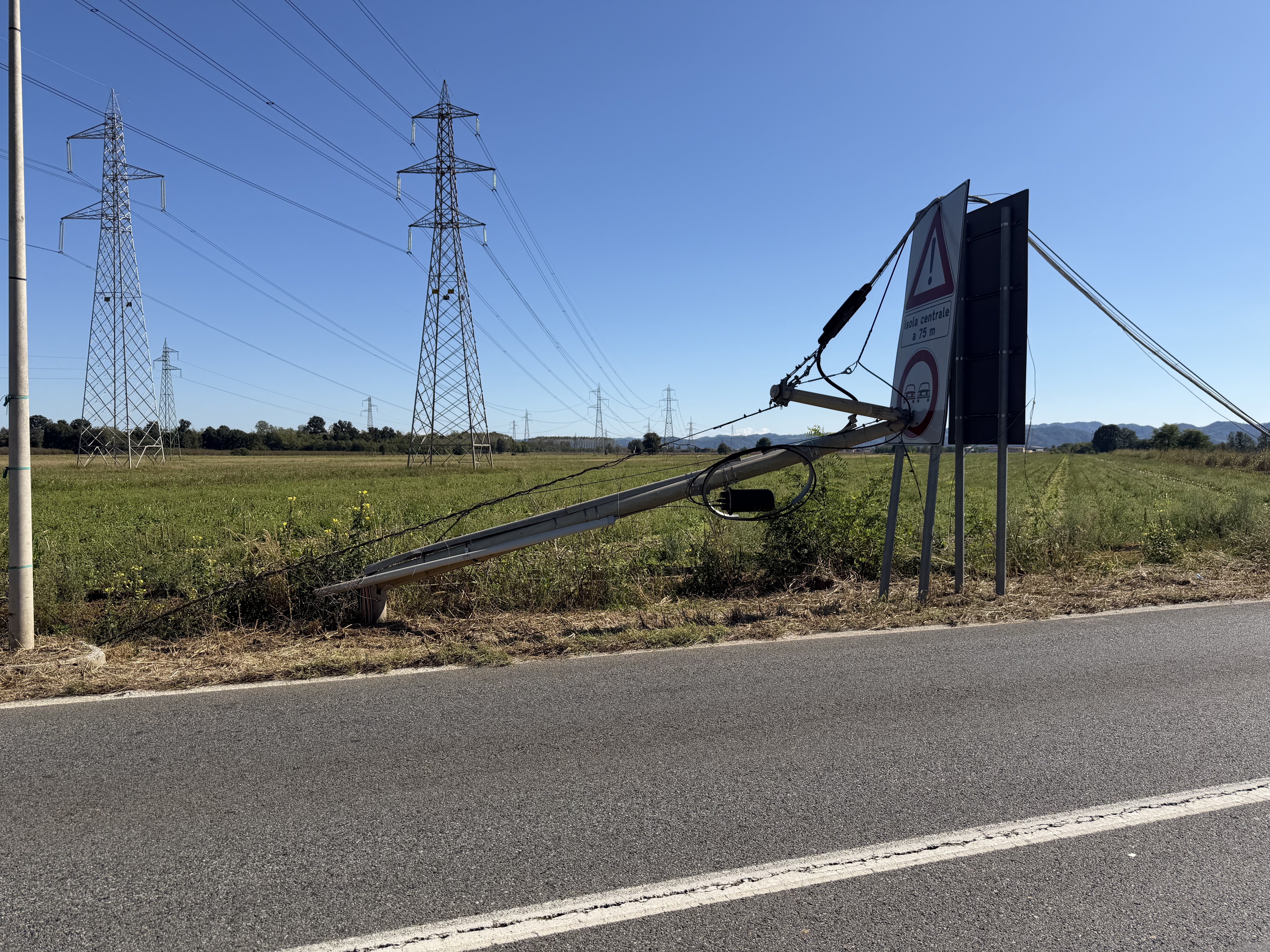 la SP 11 Padana Superiore al Km 30 , tale accaduto ha divelto un palo Enel sul lato in direzione