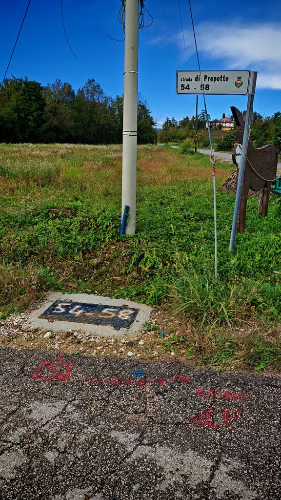 l'abitazione dove abito, è collegata con una strada privata dalla lunghezza di circa 100M, nell'ingresso della strada privata hanno posato un pozzetto con sopra scritto a vernice i tre civici che dovrà servire compreso il mio.