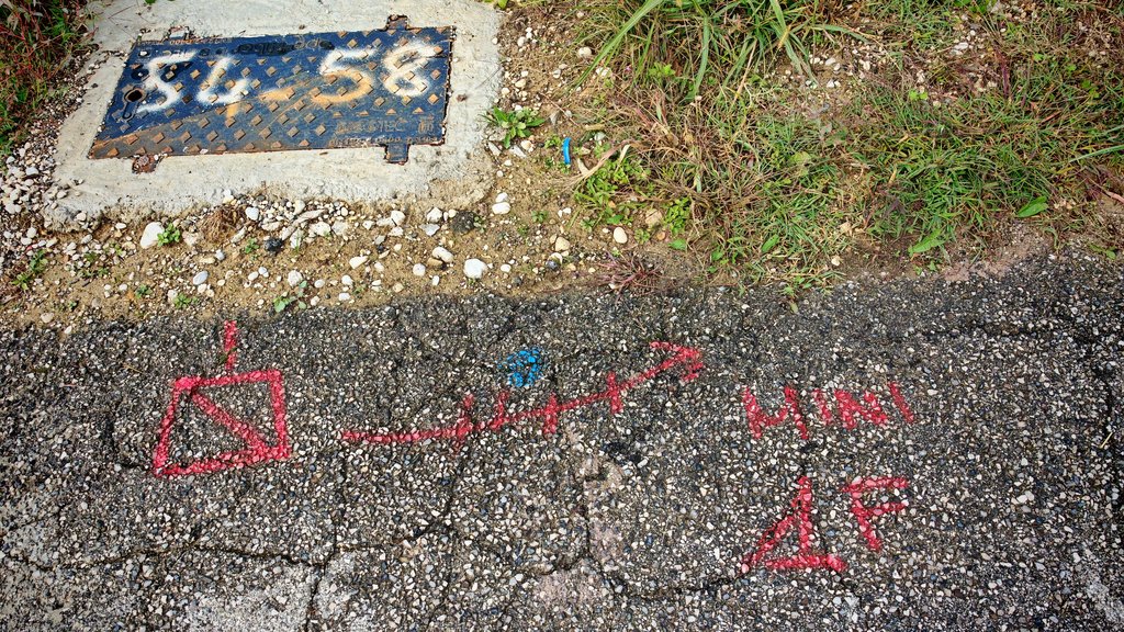 Sull'asfalto c'è disegnato anche un qualcosa che non capisco, una linea con una freccia con 4 linee che la tagliano.