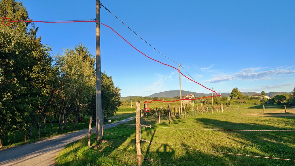 Su una foto in rosso ho segnato il percorso che dovrebbe fare il cavo con la fibra per arrivare a casa mia.