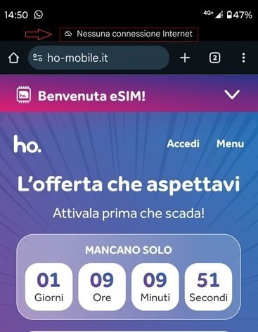 Quando ho provato ad accedere alla pagina di ho., dopo quasi 40 secondi (si collega in 2G su linea telefonica???) è apparsa la pagina web del sito!