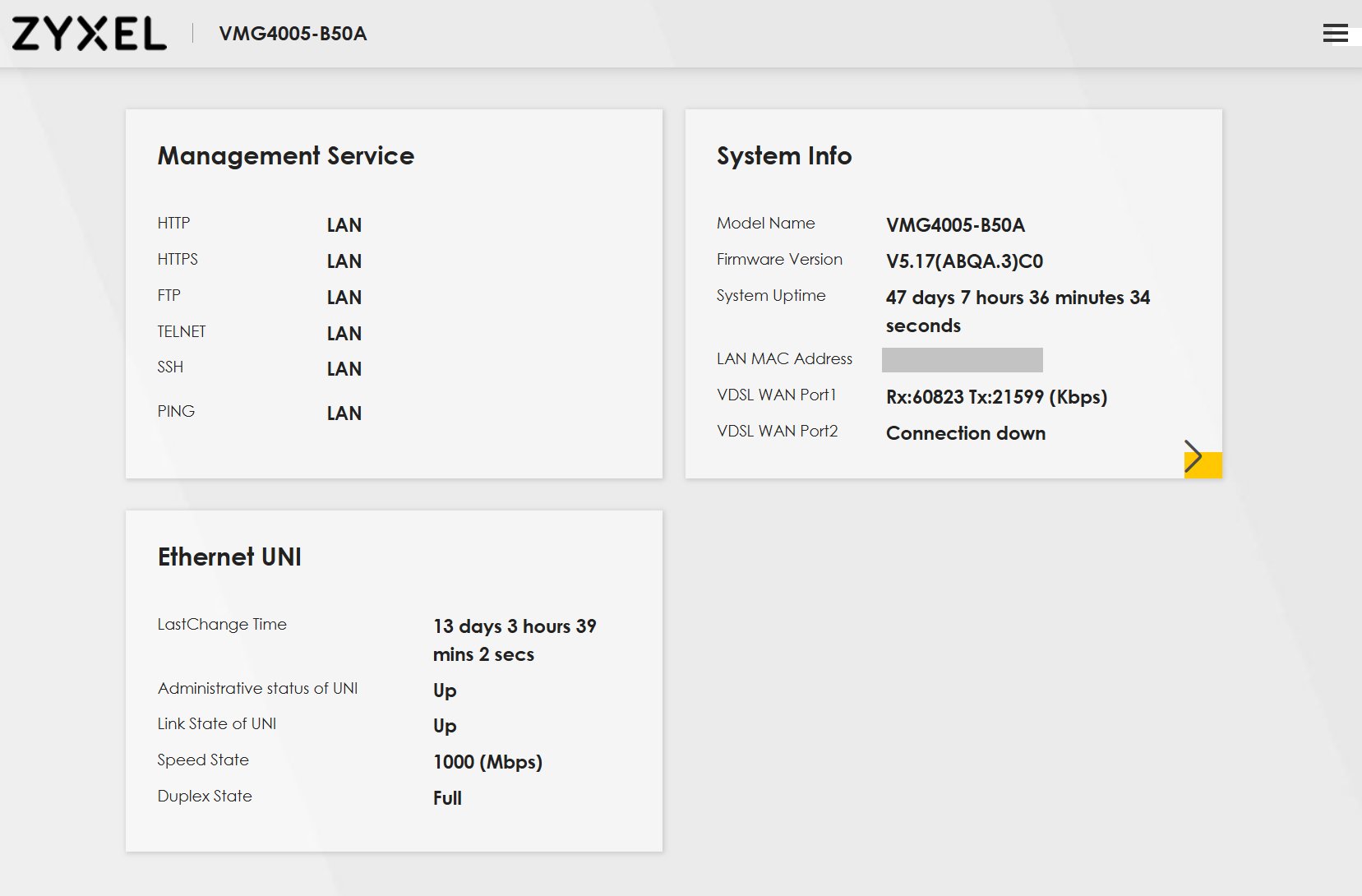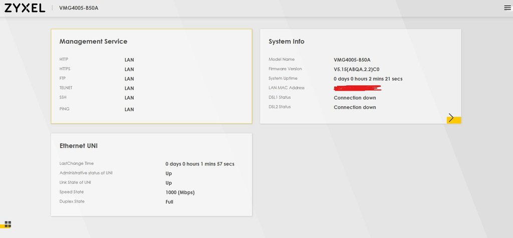 Collega il computer alla porta LAN, entra nel modem (192.168.1.1 / admin / password sotto il modem) e posta la schermata iniziale, tipo questa sotto: