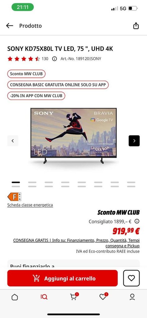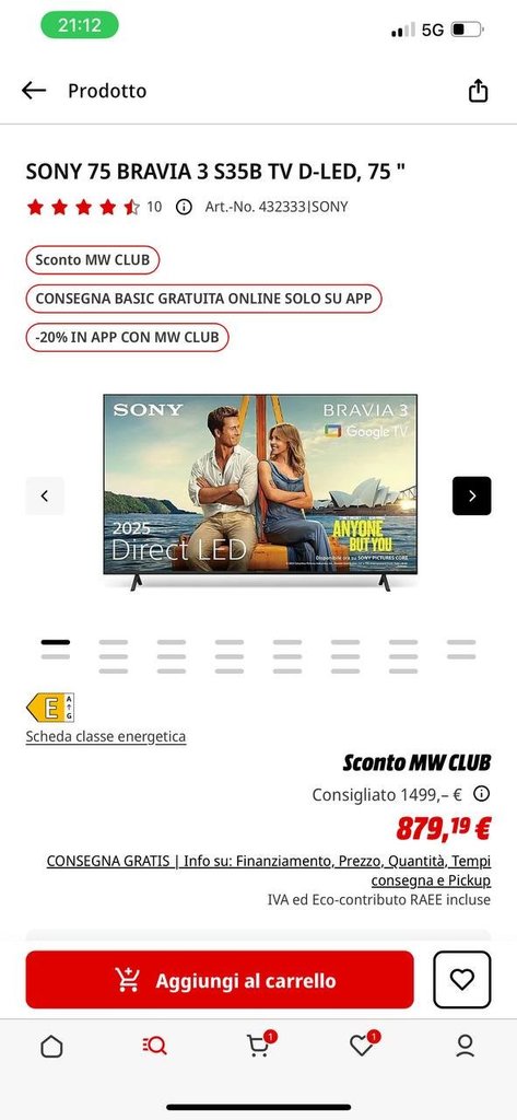 Ciao a tutti, mi sto trasferendo nella casa nuova ed ho bisogno di cambiare il mio televisore (LG 49Nano866 - 49") in quanto troppo piccola, sto pensando di optare ad un 65" o 75", l'utilizzo principale sarà gaming su PS5 e Switch 2, Film e Calcio, il prezzo massimo come scritto nel titolo di 1000 euro, non posso superare questa cifra almeno che non si tratti di un offerta clamorosa, sto guardando l'app della mediaworld e grazie alla tessera MW Club sembra ci siano ottimi sconti, vi lascio qui quello che trovato oltre ad un panasonic di cui ho sentito parlare bene in vendita su un altro sito: