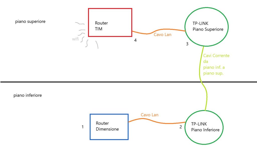 Per far arrivare internet al computer nel piano superiore della casa, uso un extender (TP LINK--AV600)