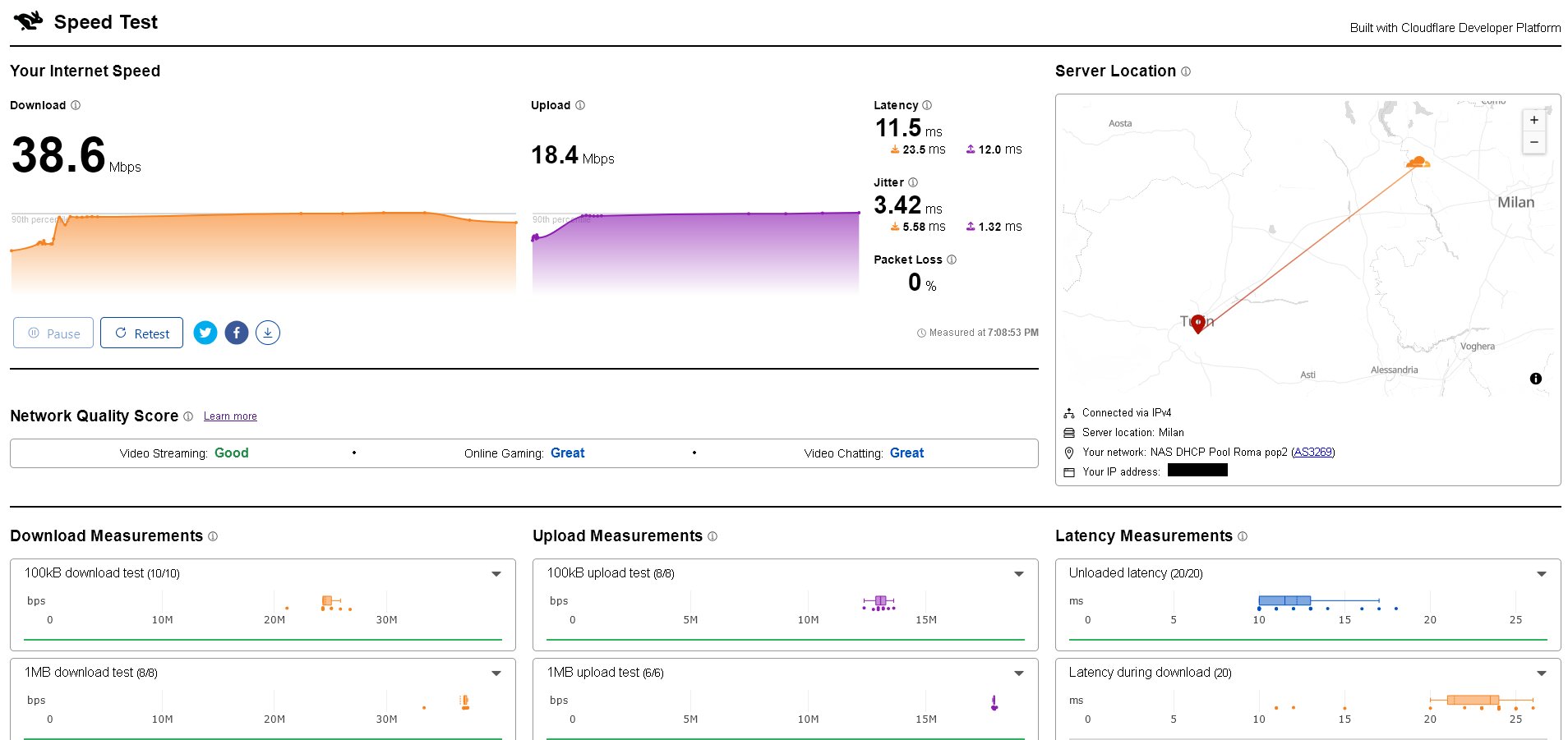 I test che fai dimostrano che questo impatta soprattutto sull'upload, dove lì hai addirittura 5,8dB di SNR e arrivi a 180ms di latenza quando saturi.