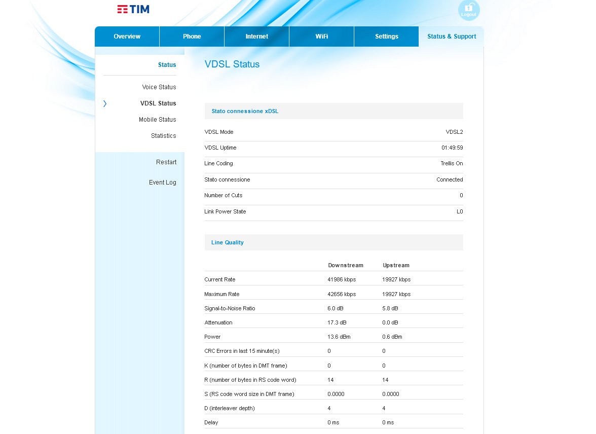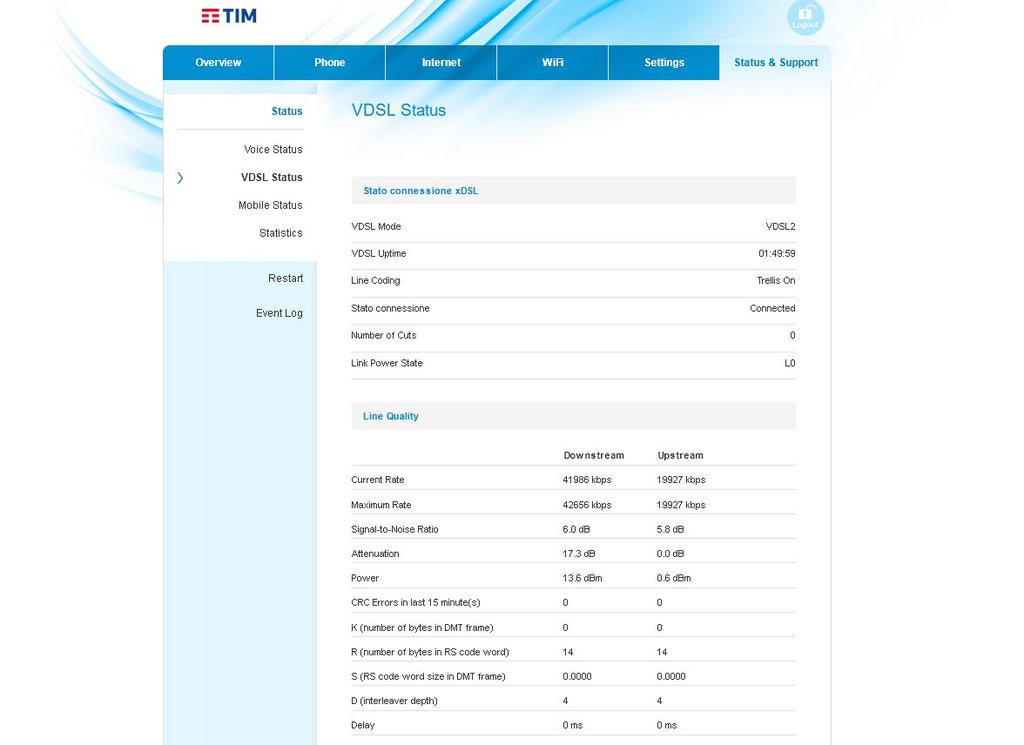 Chiama il supporto e chiedi esplicitamente che ti alzino il margine di rumore (SNR) dagli attuali 6dB a 9 o 12dB perché noti che la linea è instabile.