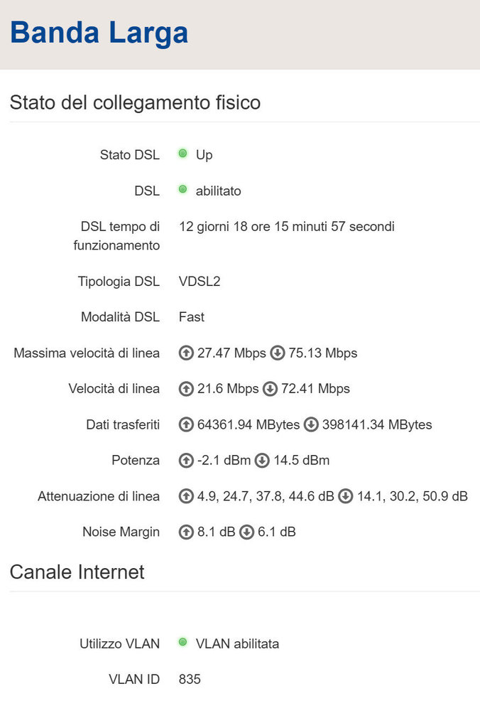 Una cosa che avevo dimenticato di menzionare nell'altro post è che ho attiva l'opzione MAX SPEED sin dai tempi dell' adsl, non so se questo può influire in qualche modo sui valori.