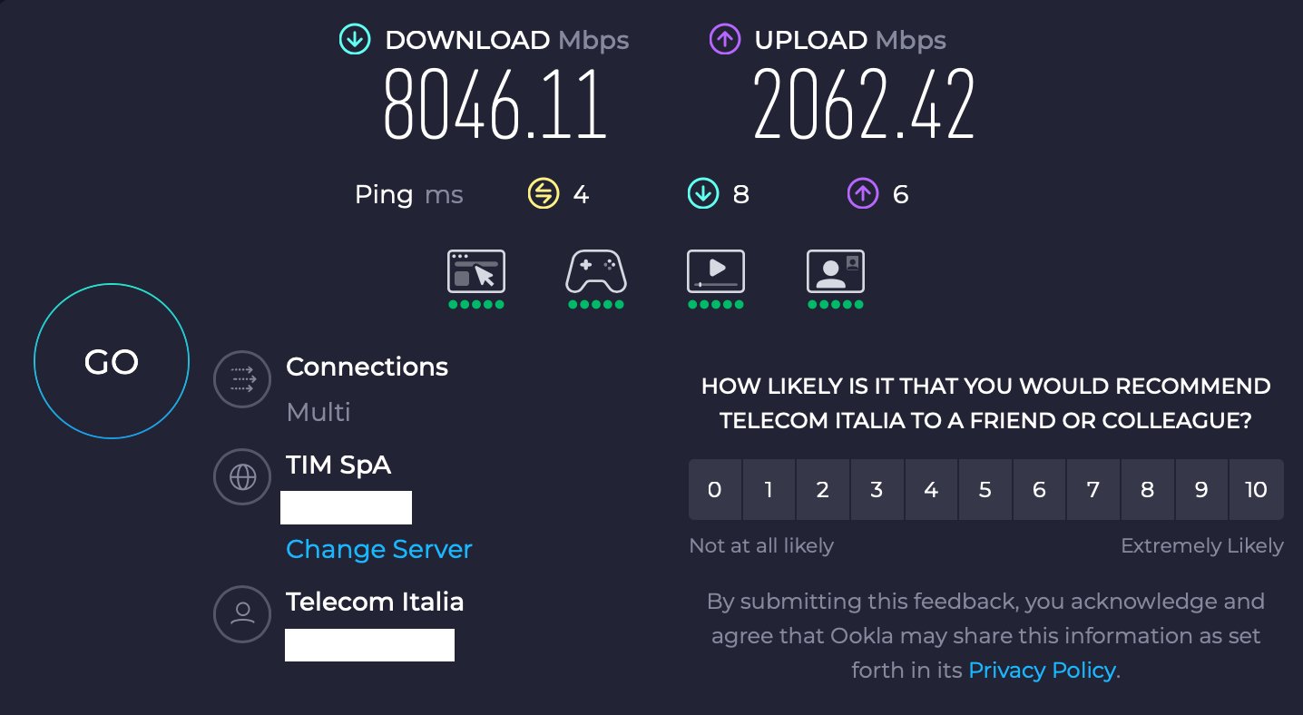 Steven Saviolo Non lo so, a detta dell'operatrice la disdetta se non ricordo male sono 23 euro + tenendo conto i 30 giorni per togliere la linea e blah blah blah. Anche se sono tre mesi sinceramente me ne frego, almeno ho la 10g adesso e sono apposto per un bel pezzo. Devo valutare però di cambiare router, stavo penando al ucg fiber di cui be parlavo sopra