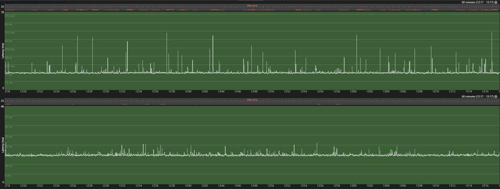 Jill Il secondo hop per quanto sia passato da 12 a 26, è comunque stabile, invece ho notato che il terzo hop (sono su namex) ha degli picchi frequenti a 35/45ms, nell'ordine di 1/2 al minuto