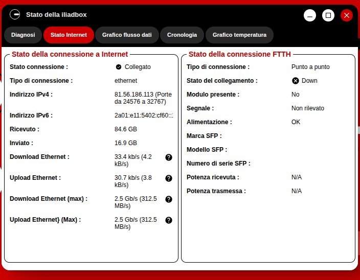 - Secondo voi è normale che la console iliadbox http://192.168.1.254/: andando su stato internet / stato FTTH: dica: