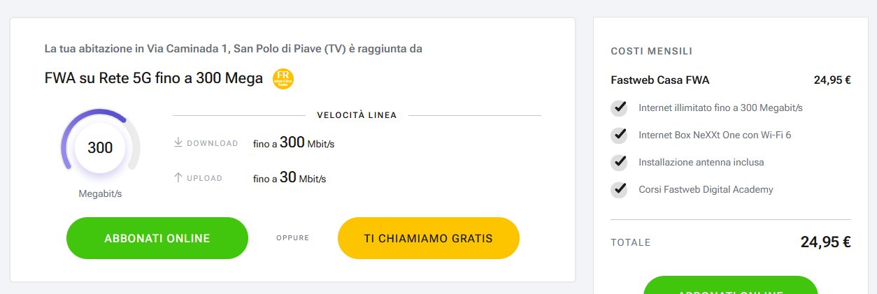 Ringrazio in anticipo eventuali pareri tecnici e/o venditori se possono verificare la situazione riguardo il servizio fwa fastweb riguardo Via San Michele 🙂.