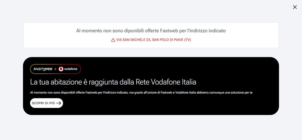 Specifico che ho visto una cpe attiva di un utente su una via limitrofa in zona: Via Caminada 1° Tronco , numero civico: 1 / San Polo di Piave [TV] , e verificando sul portale di fastweb risulta attivabile: