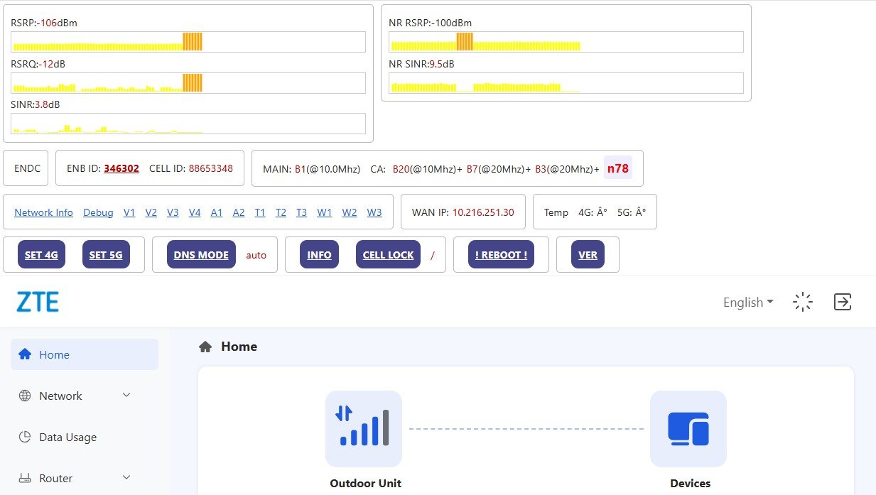 In questo momento sta puntando la mia perete in pietra (direzione indicativa di dove a 1,6 km ho una BTS 5G Passivo ed a 4,2km una BTS con 5G puro.