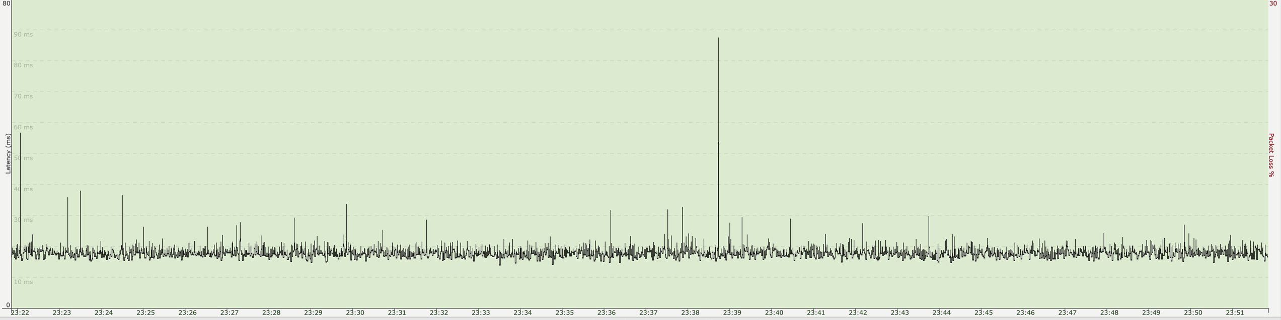 è un minimo attentibile il ping in "tempo reale" mostrato qui? Con una connessione cablata ballo tra i 23 e i 29 su quella più bassa. Con una connessione 5G ( non in un modem ma solo da un telefono che faceva da hotspot ) sullo stesso sito "oscillava" in continuazione fra i 35 e i 350 avanti e indietro a manetta.