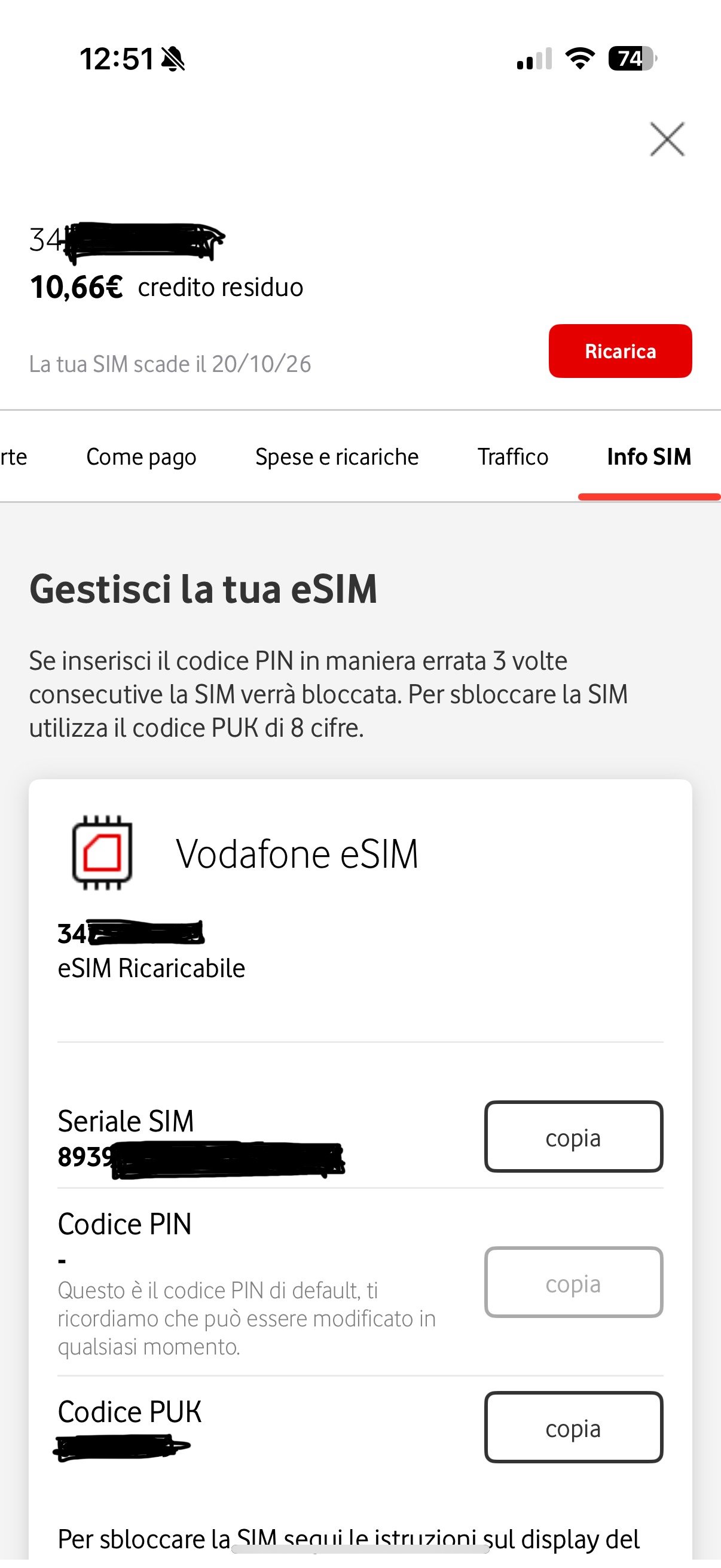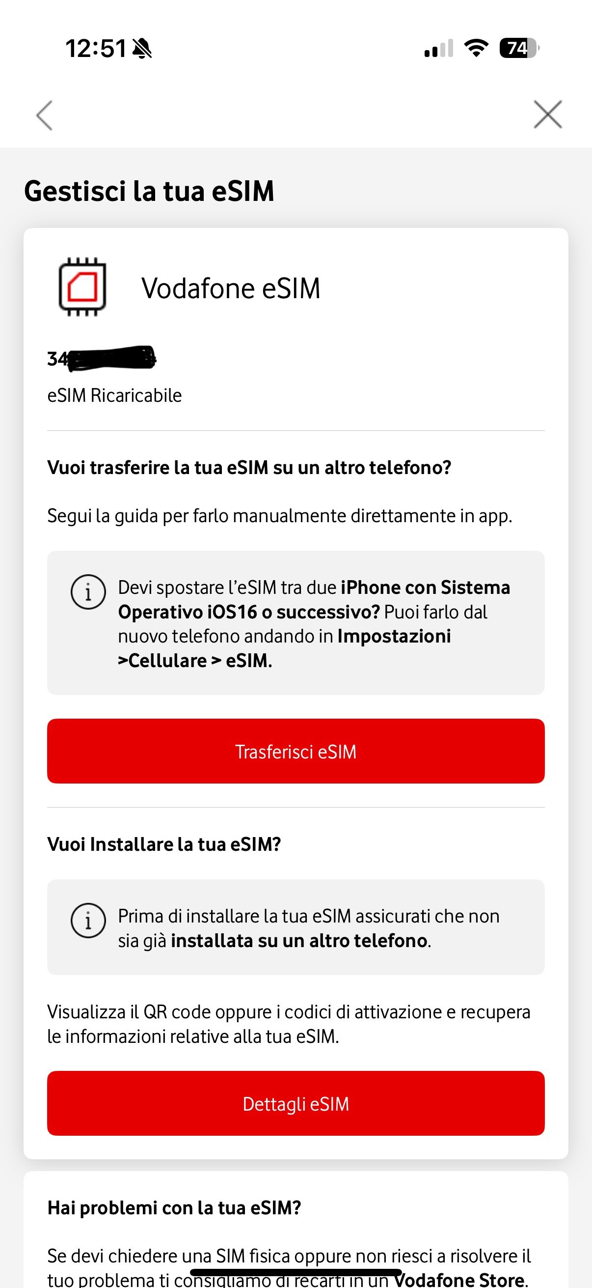 Ho notato che sull’applicazione Vodafone nella sezione “Info SIM” viene indicato che la mia SIM è formato eSIM. Tra l’altro nelle opzioni del “sotto menù” mi da la possibilità di gestire la sostituzione come fosse una eSIM.